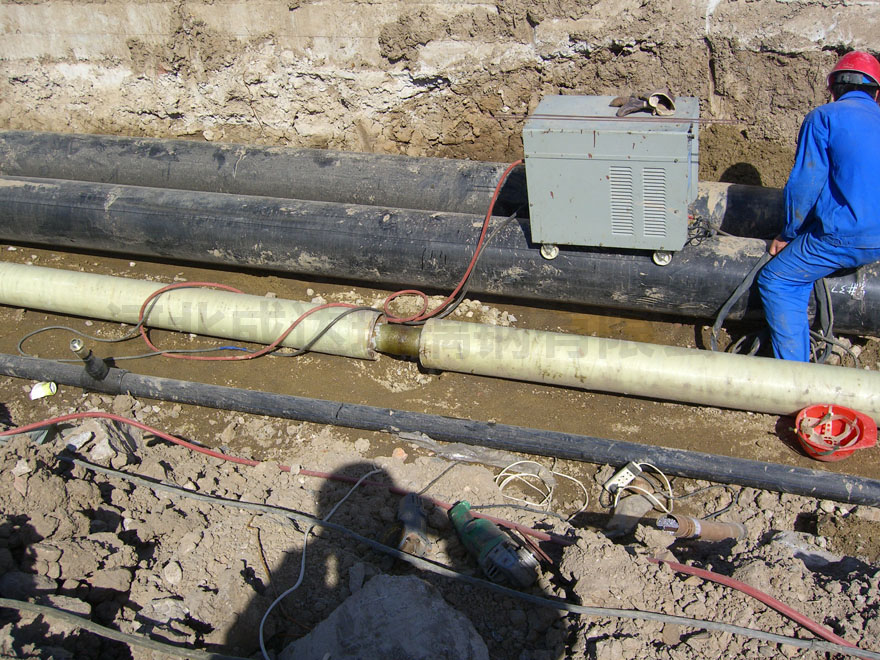 由計算機(jī)控制,在芯模上按規(guī)定的與纖維纏繞玻璃鋼管相同的工藝制造內(nèi)襯,凝膠后按設(shè)計好的線型和厚度纏繞結(jié)構(gòu)層,并將石英砂與樹脂混合的砂漿纏在結(jié)構(gòu)層中,最后纏繞外保護(hù)層。